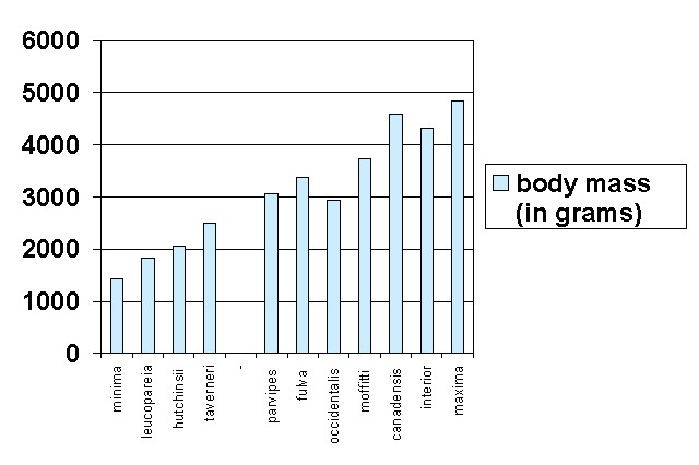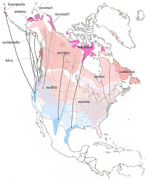 of the subspecies B. h. hutchinsii and B. h. taverneri.
